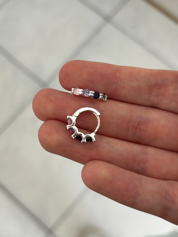 Argollas en acero blanco de 1 cm de diámetro.