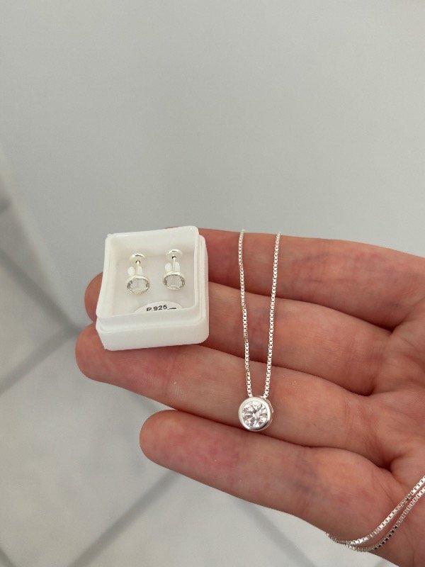 conjunto De plata 925 de 50 cm de largo más dije Susano. Par de aros de plata 925