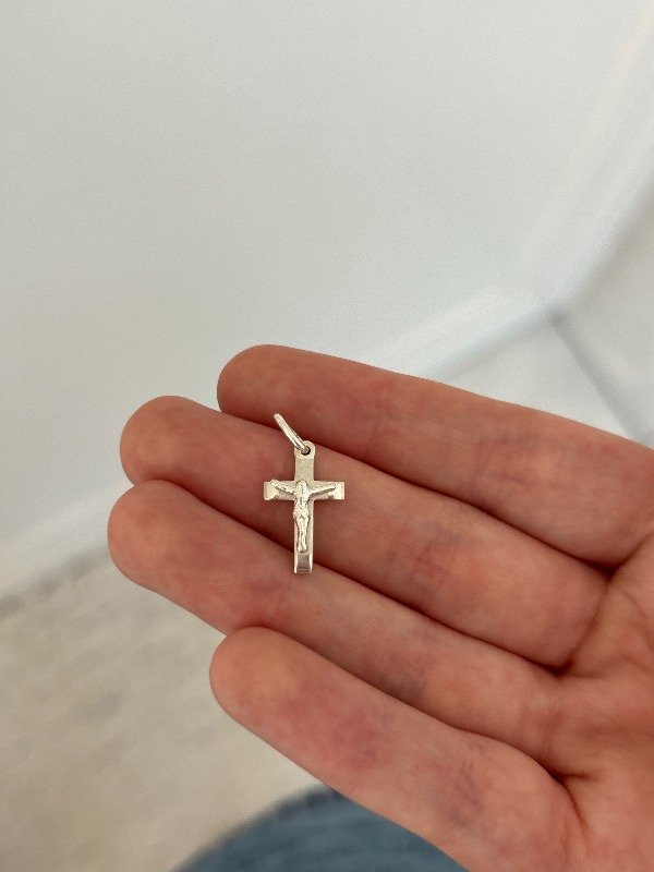 Dije de plata de 2,3 cm de alto (incluyendo el pasador) y de 1 cm de ancho.