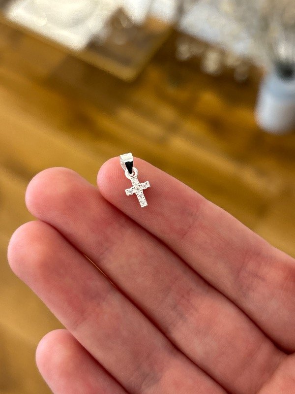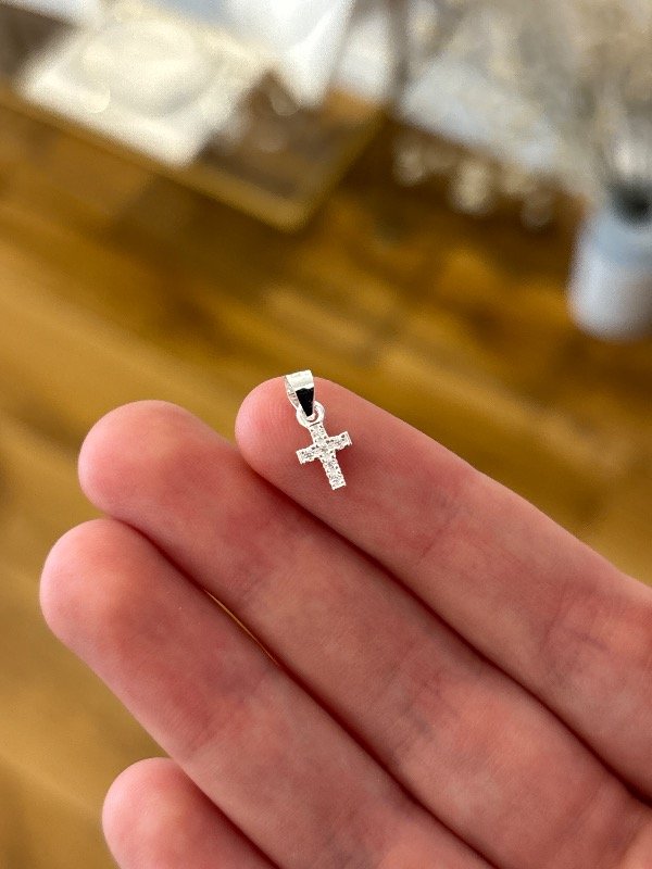 Dije de plata de 1,2 cm de alto (incluyendo el pasador) y 0,6 cm de ancho