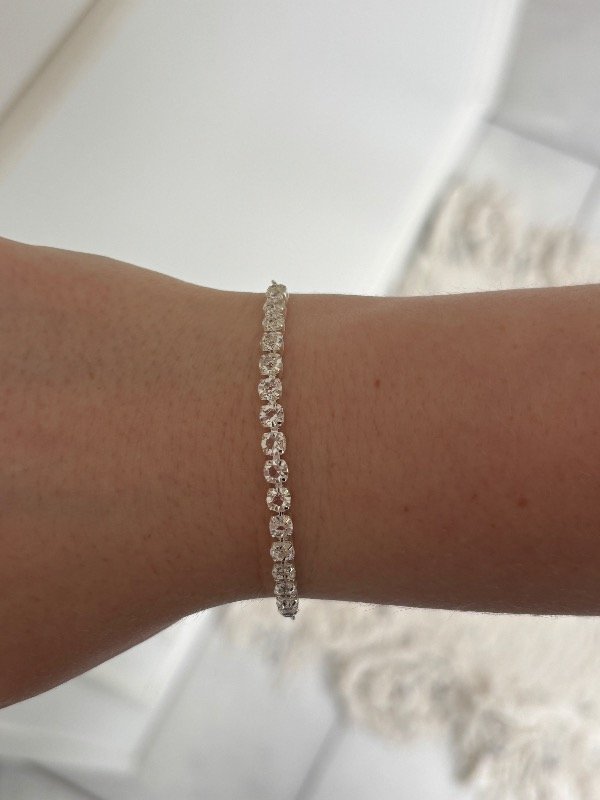 Pulsera en acero blanco de 18 cm de largo, más 5 cm para regular.