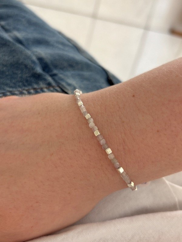 Pulsera de plata y cuarzo Lunar de 16,5 cm de largo, más 3 cm para regular.