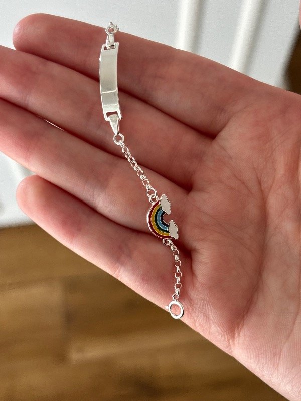 Pulsera de plata para bebé de 13cm de largo, más 2 cm para regular.