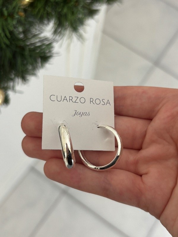 Argollas en acero blanco de 2 cm de diámetro.