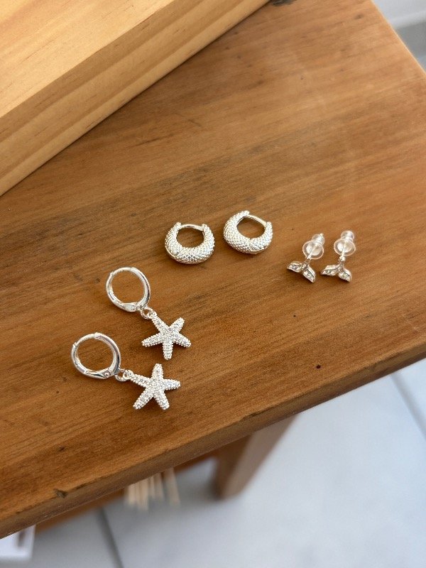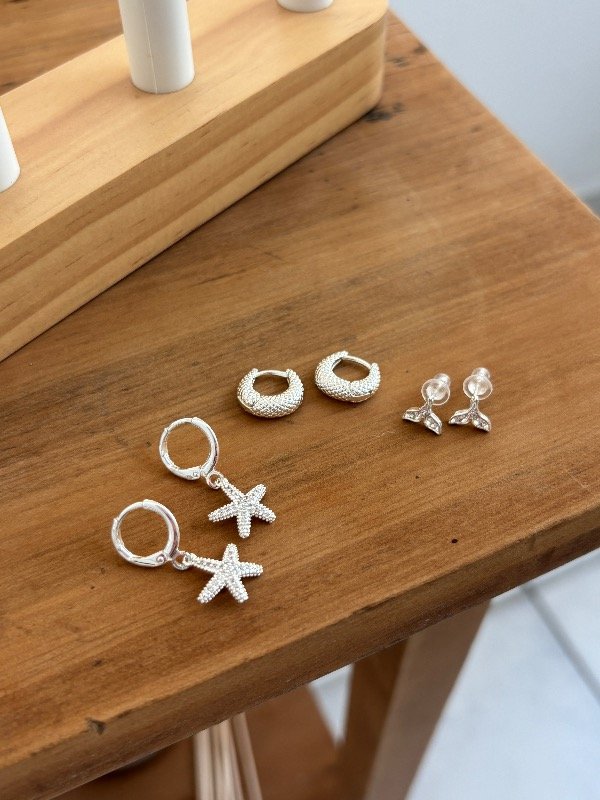 Argollas en acero blanco de 1cm de diámetro y 0,8 cm de diámetro, más 1 par de aros en acero blanco.