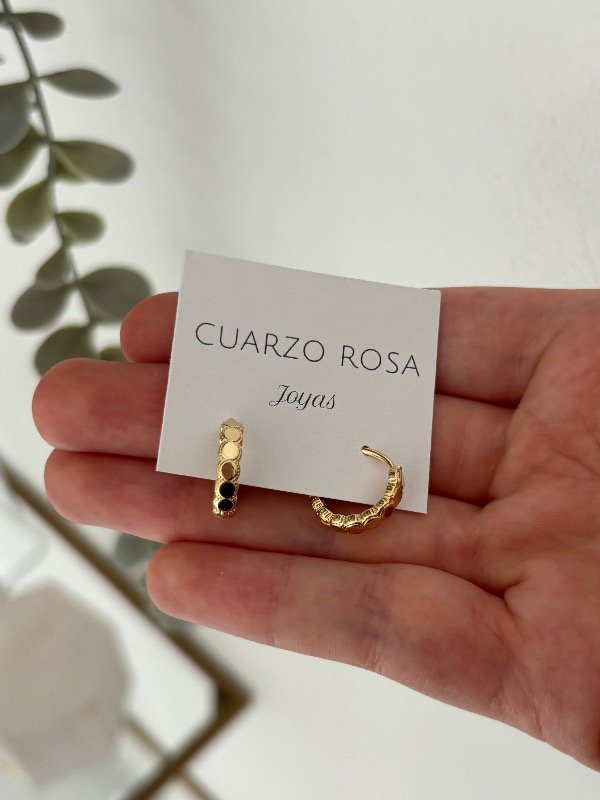 Argollas enchapadas en oro de 1 cm de diámetro.