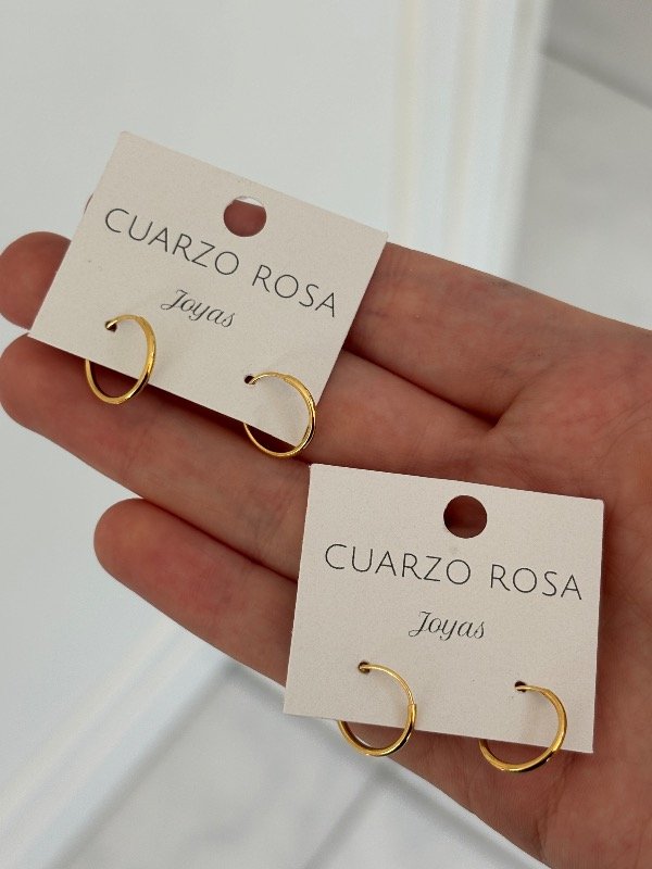 Argollas enchapadas en oro de 1 cm de diámetro.