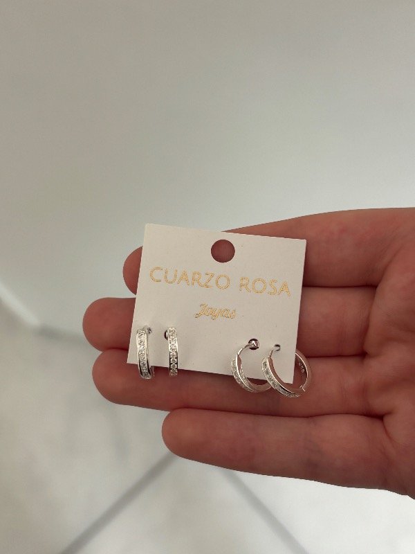 dúo de argollas de plata de 1,1 cm de diámetro y de 0,9 cm de diámetro.