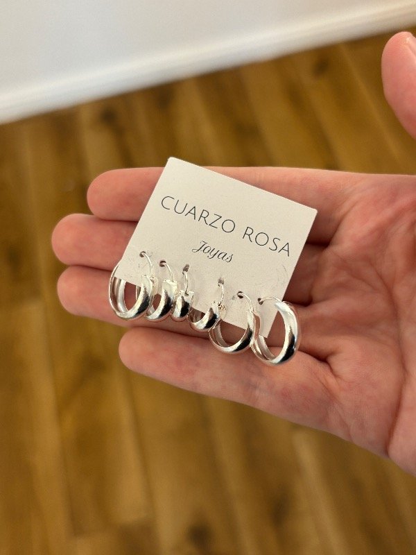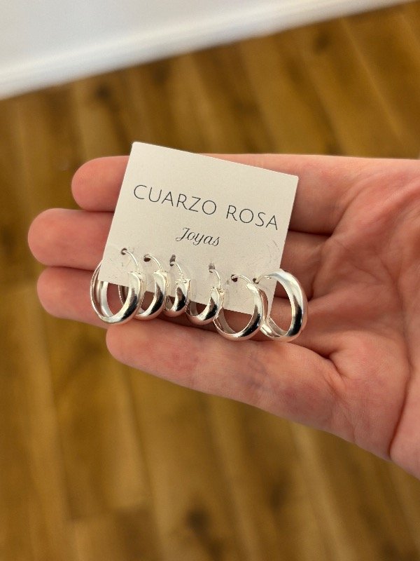 Trío de argollas en plata 925 de 1,4 cm; 1,2 cm y 1 cm de diámetro.