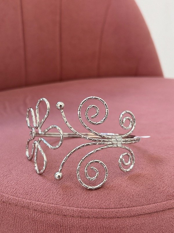 Brazalete en acero blanco de 8,5 cm de diámetro.