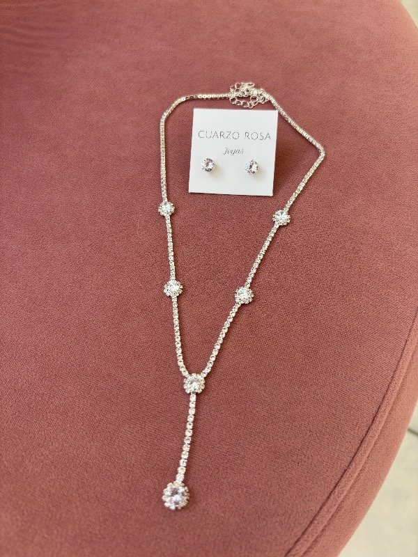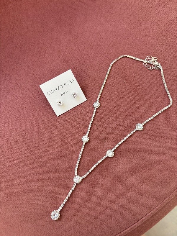 Conjunto de collar y aros en acero blanco. Collar de 40 cm de largo, más 9 cm para regular.