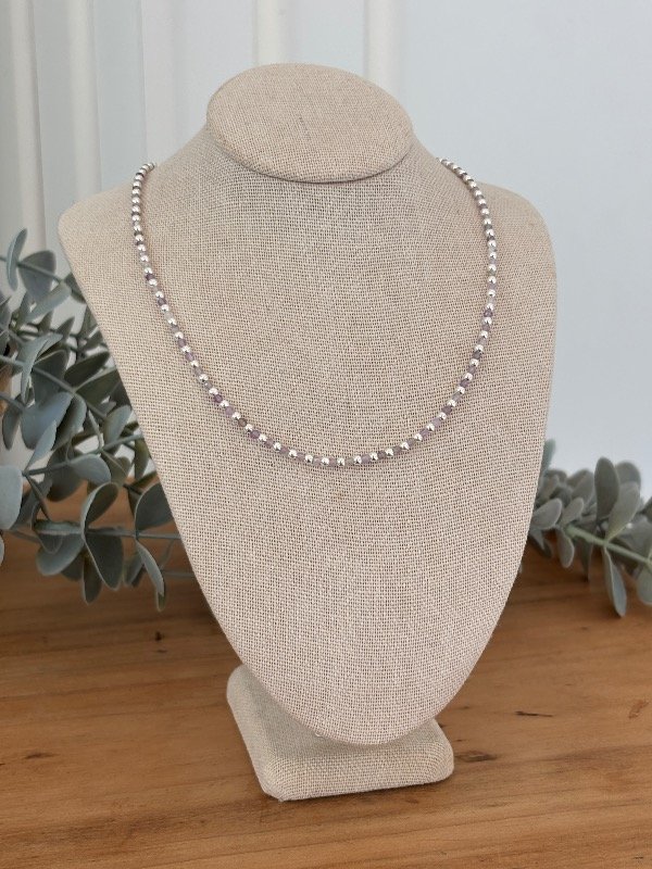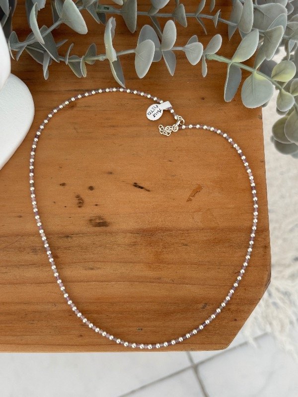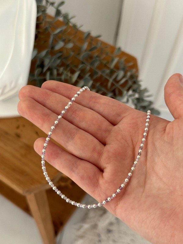 Conjunto de plata con piedra amatista de 42 cm de largo, más 2,5 cm para regular.