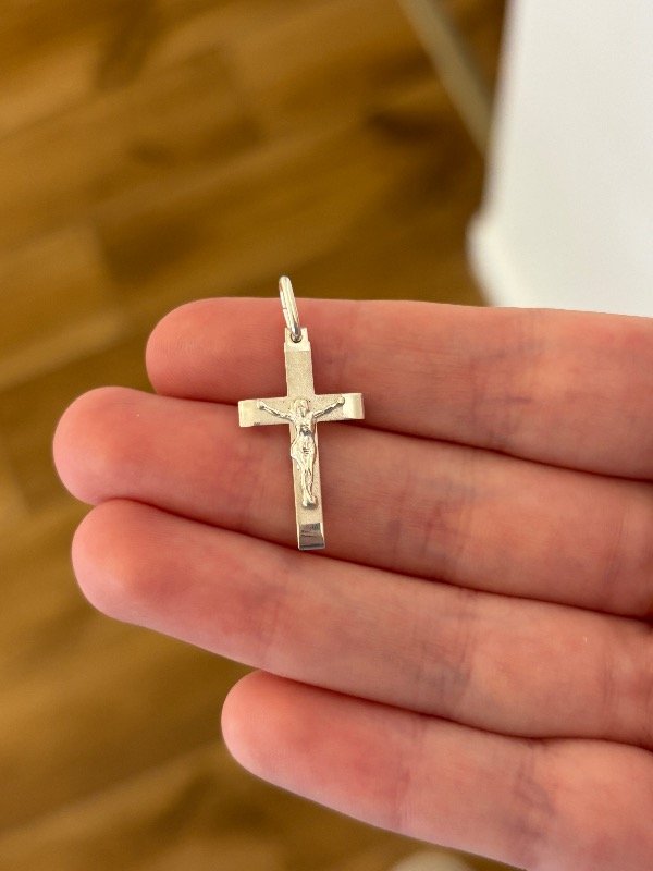 Dije de plata de 3,1 cm de alto (incluyendo el pasador) y 1,5 cm de ancho