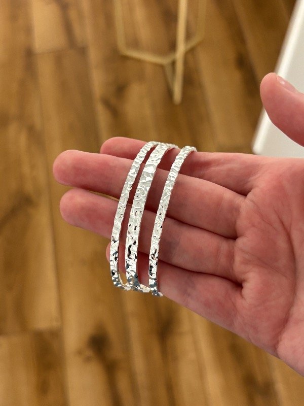 Pulsera en acero blanco de 6 cm de diámetro.