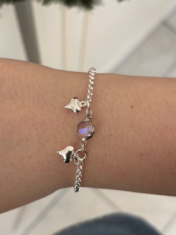 Pulsera de acero blanco de 19 cm de largo, más 3 cm para regular.