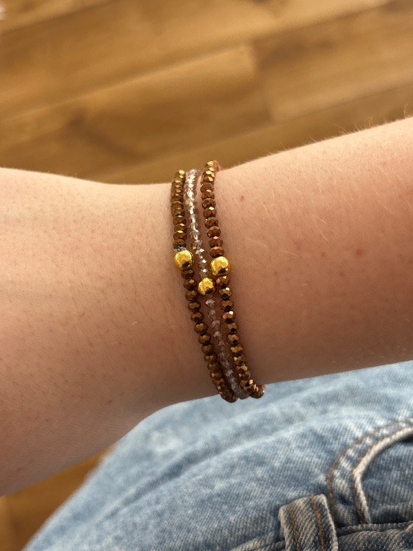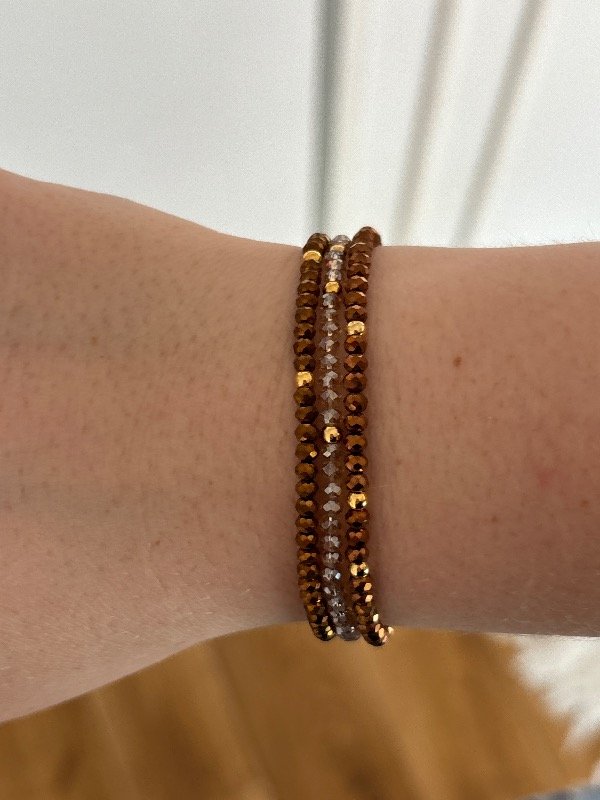Trío de pulseras elasticas en acero dorado y vidrio
