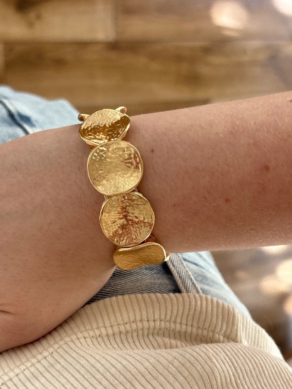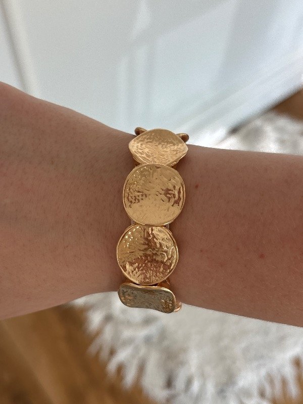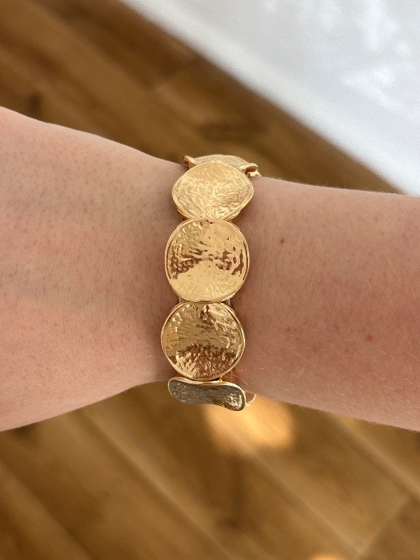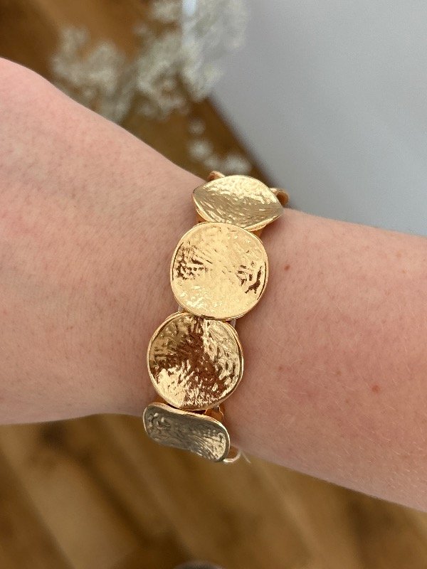 Pulsera Isadora Enchapada en oro de 6 cm de diámetro. Es elástica.