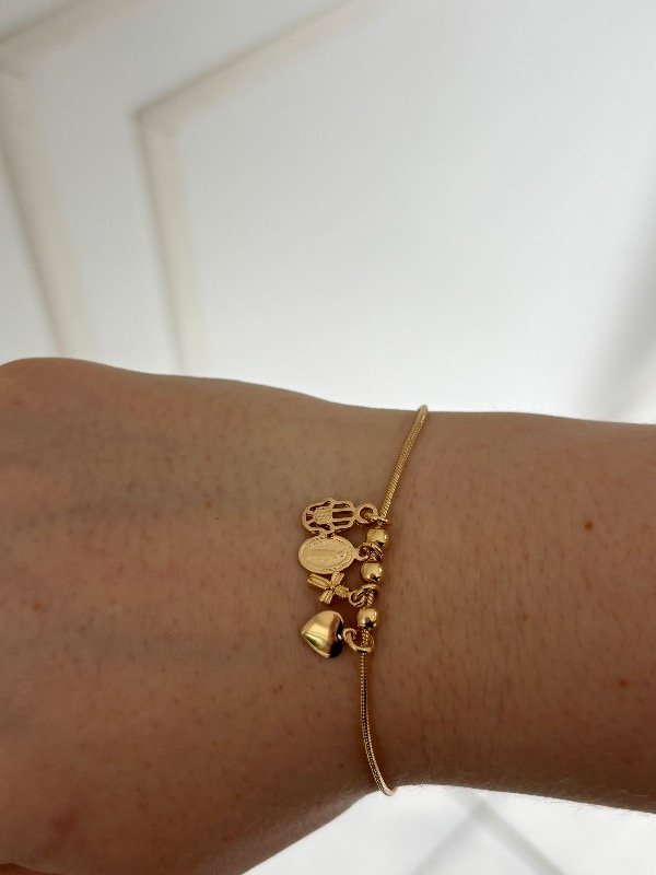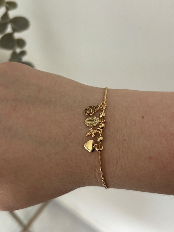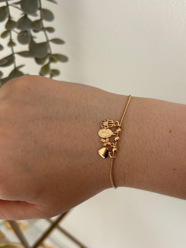 Pulsera enchapada en oro de 18 cm de largo, más 2 cm para regular.