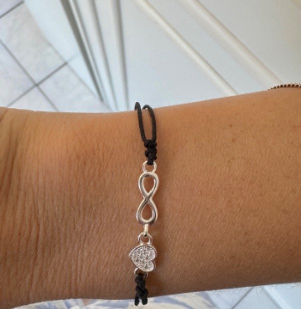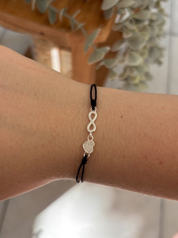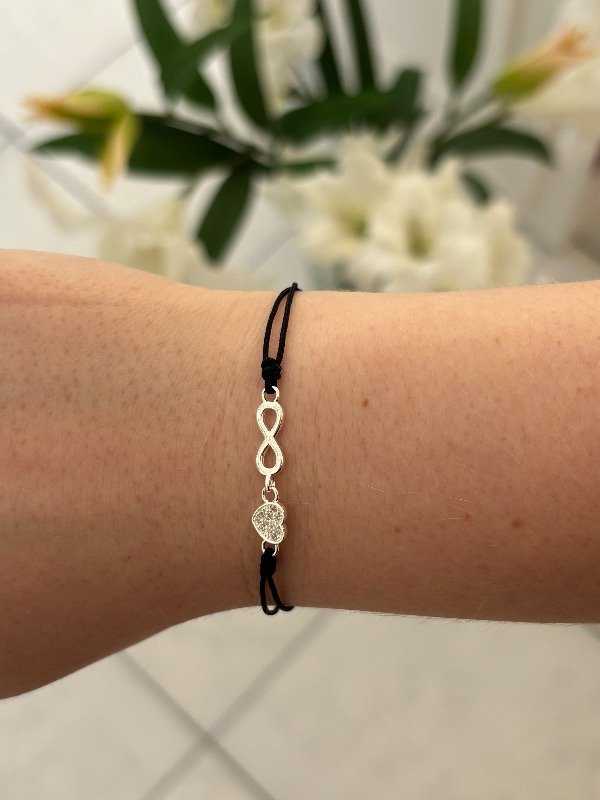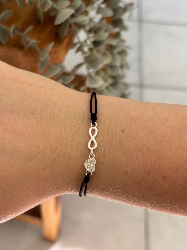 Pulsera de plata con hilo. 17 cm de largo total con 3 cm para regular el largo.